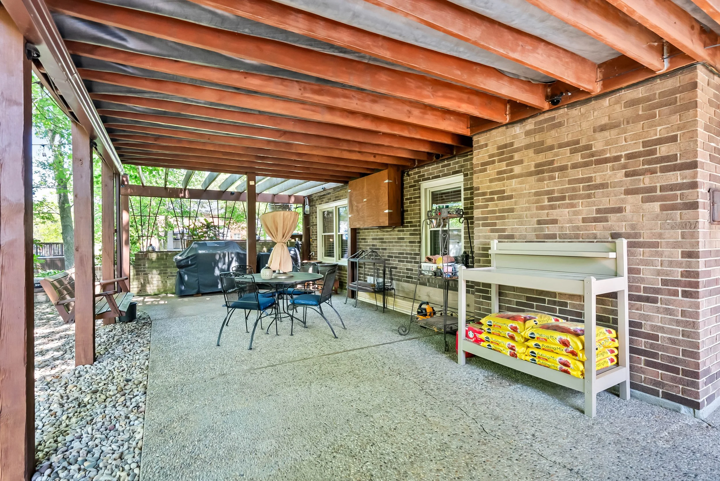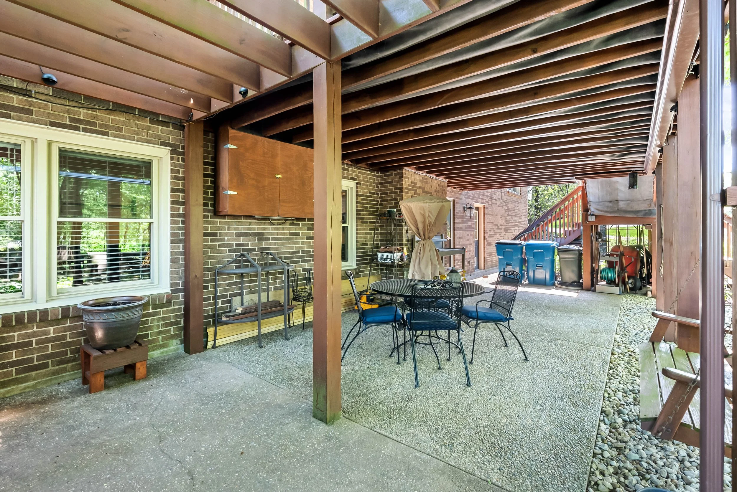 7/2015 - Front entry steps replaced due to settling and aluminum railing added. Lower level concrete patio expanded for new grilling area with pergola.